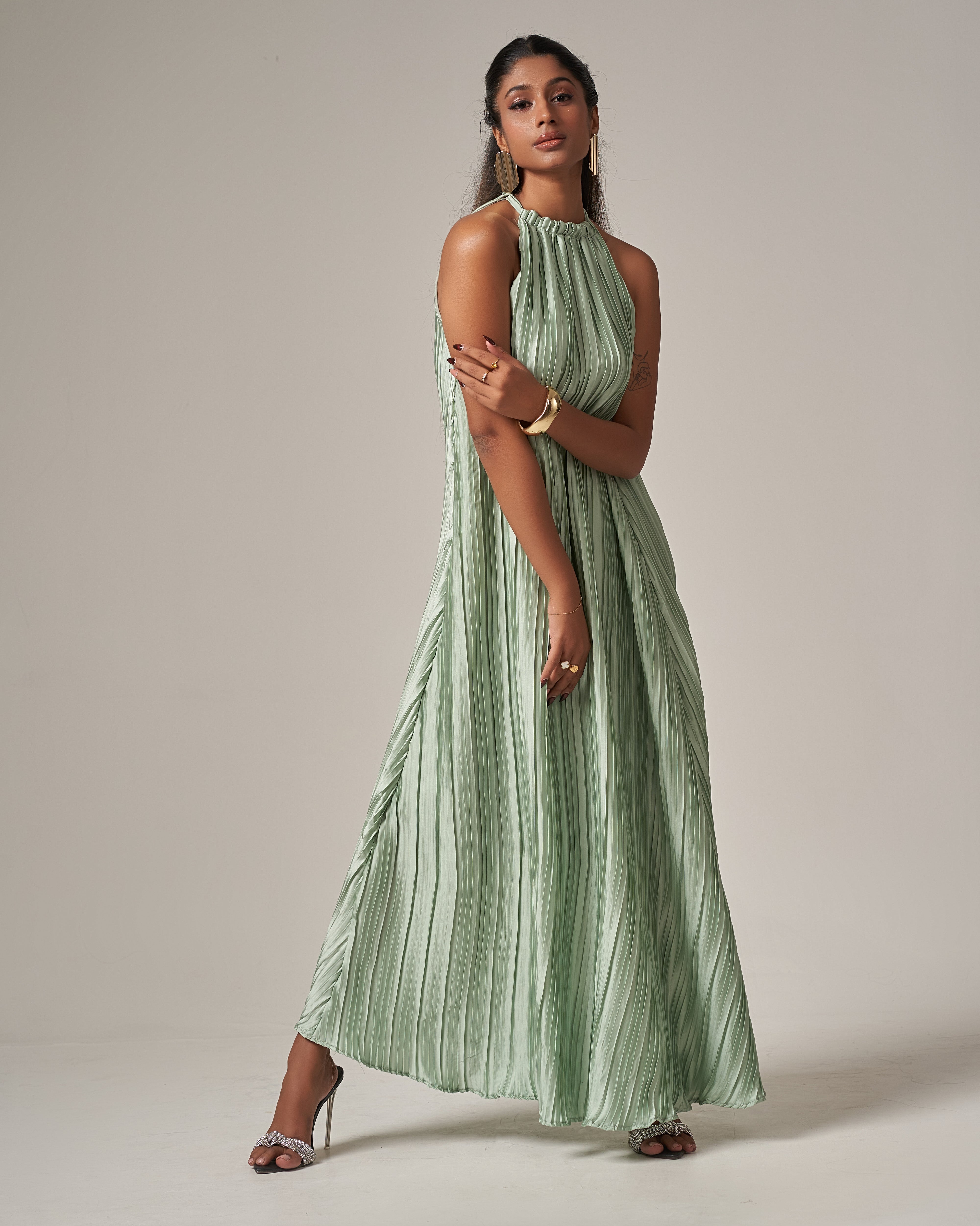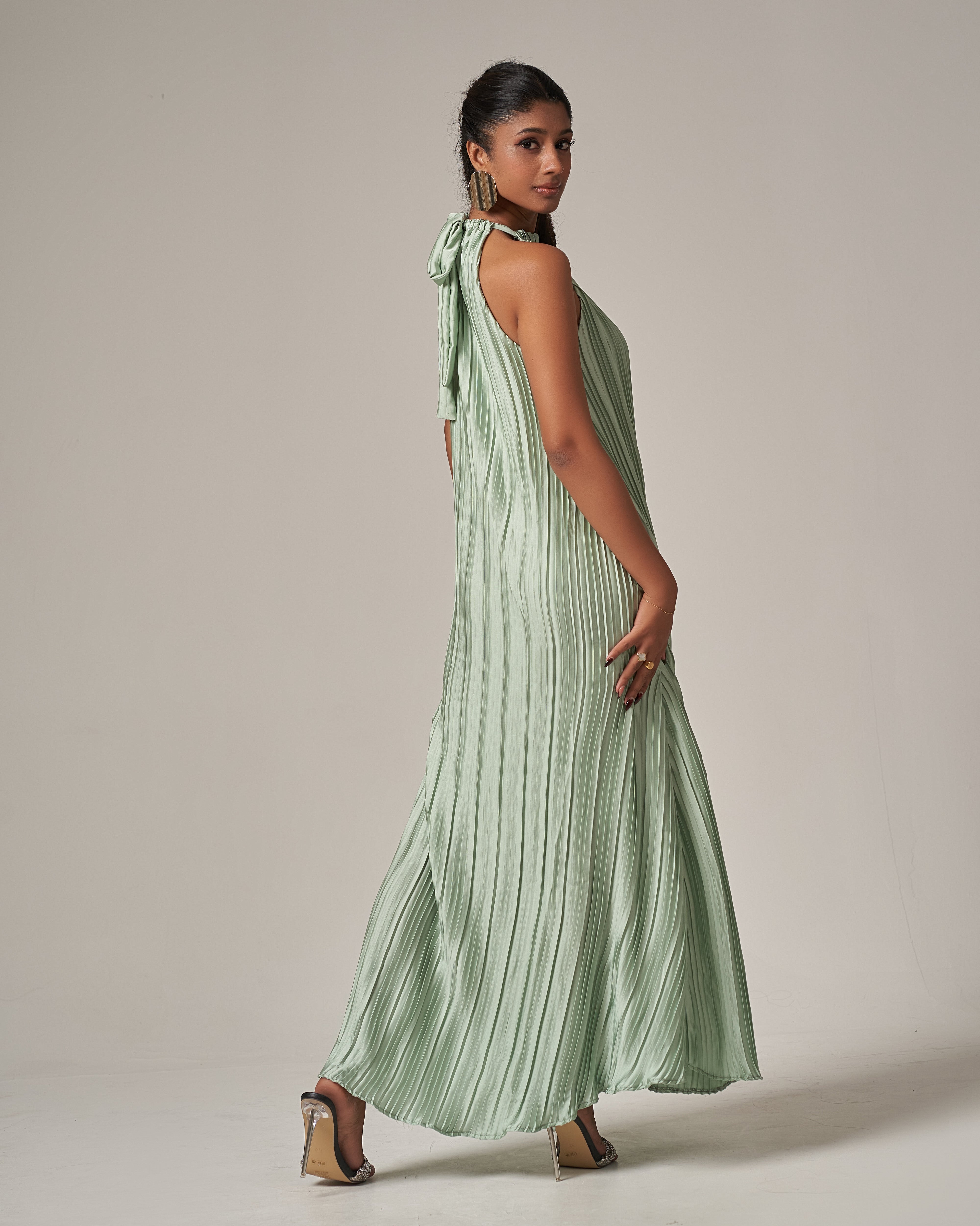 Summer Casual Vacation Halter Neck Pleated Dress – Mint