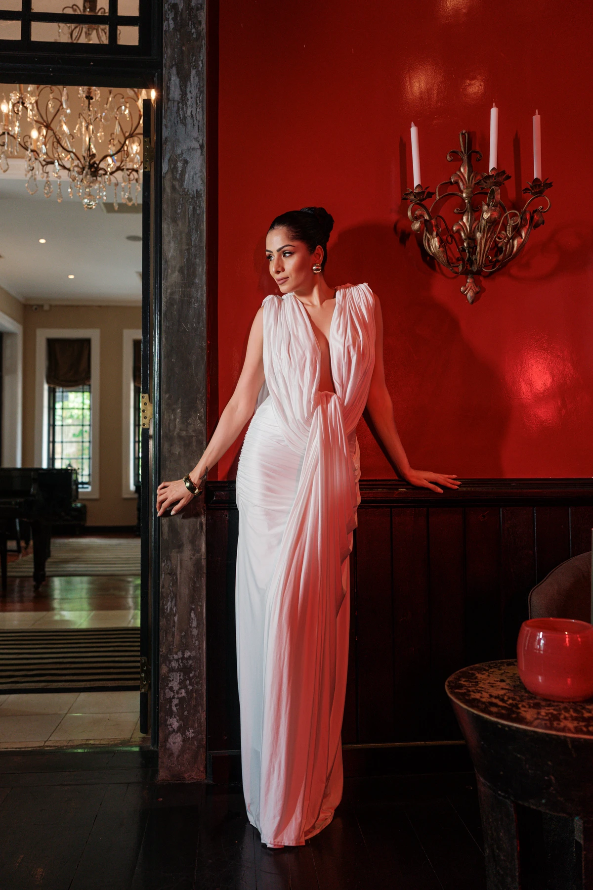 OLYMPIA WHISPER WHITE DRAPED GOWN